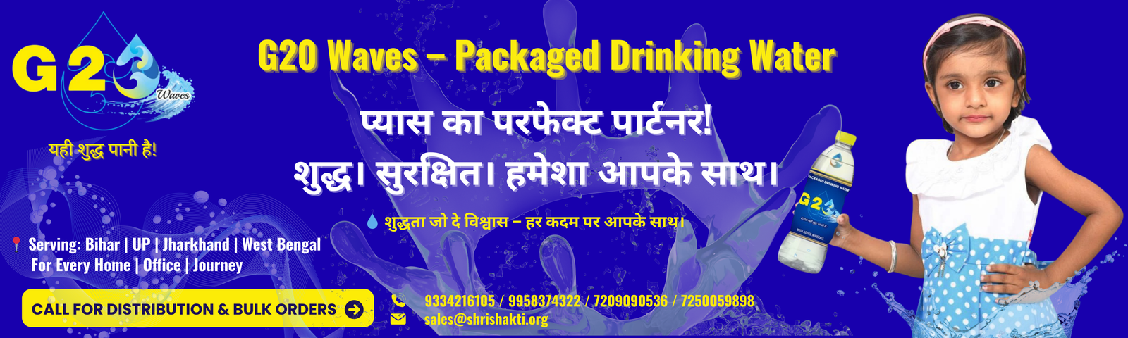 G20 Waves, a brand under Shri Shakti Food Industries, is committed to delivering safe and high-quality packaged drinking water. Our manufacturing facility, located in Hajipur Industrial Area, Bihar, follows stringent quality standards to ensure every drop meets the highest purity levels.